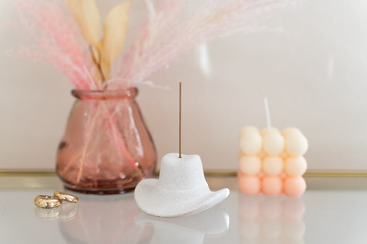 Cowboy Hat Incense Holder & Mini Incense Sticks - White